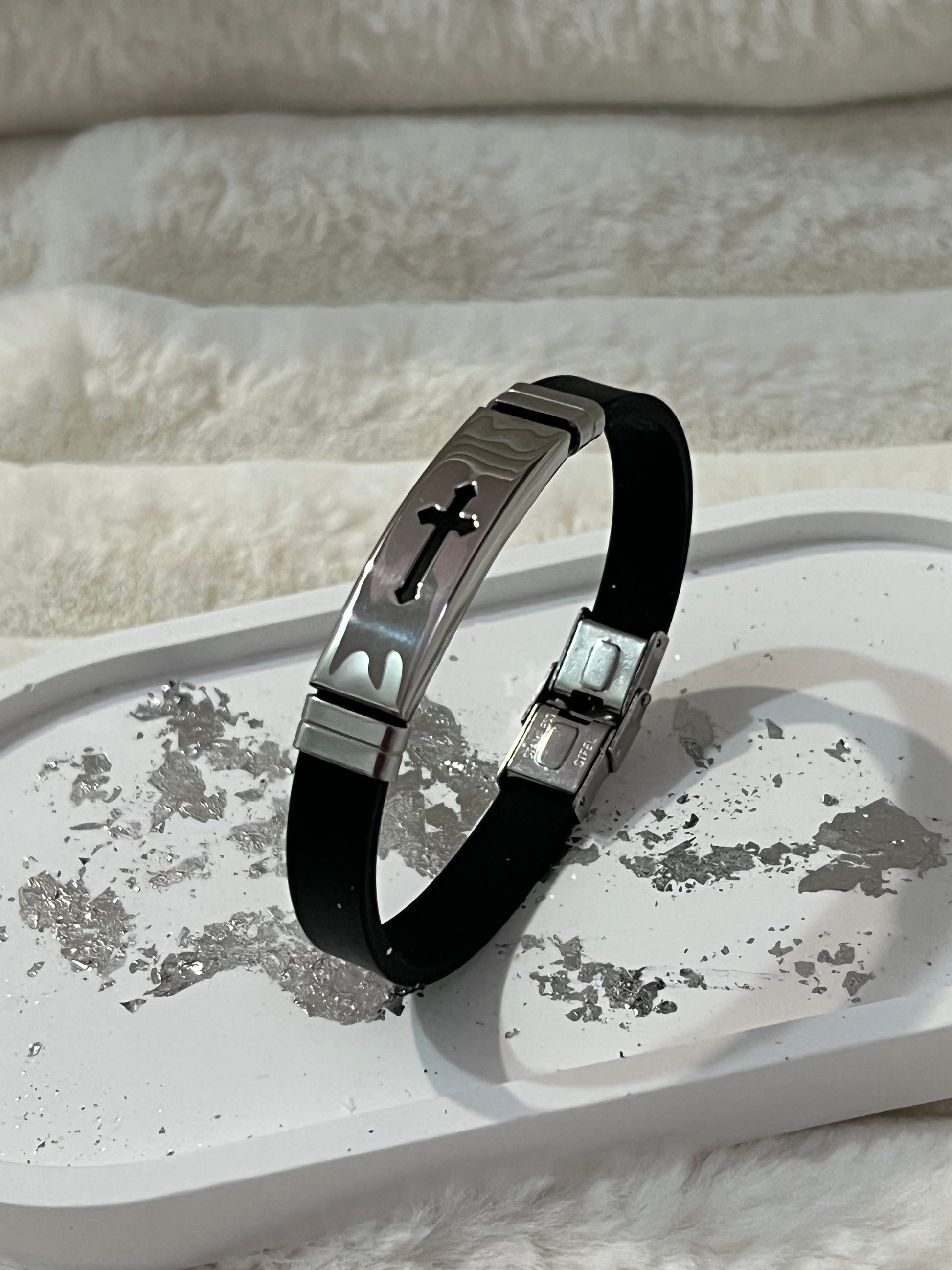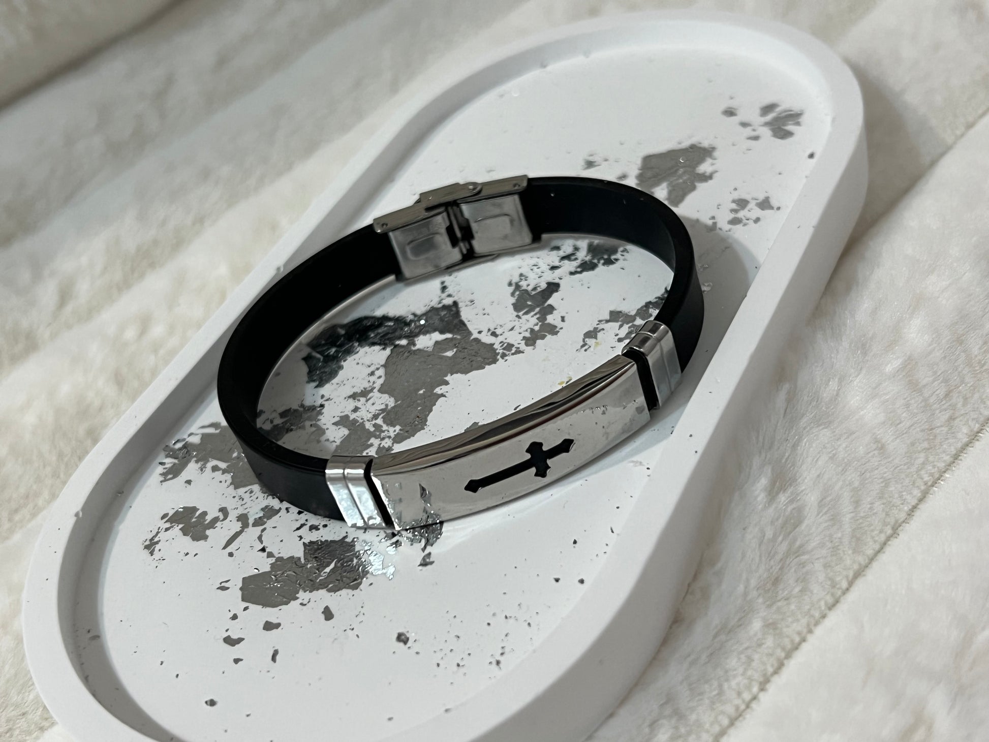 Brățările Ian și Klaus sunt accesorii statement cu un design modern, special create pentru bărbatul care apreciază eleganța discretă și stilul urban. Realizate din silicon rezistent și oțel inoxidabil, oferă un contrast plăcut între materialul mat și elementele metalice lucioase.