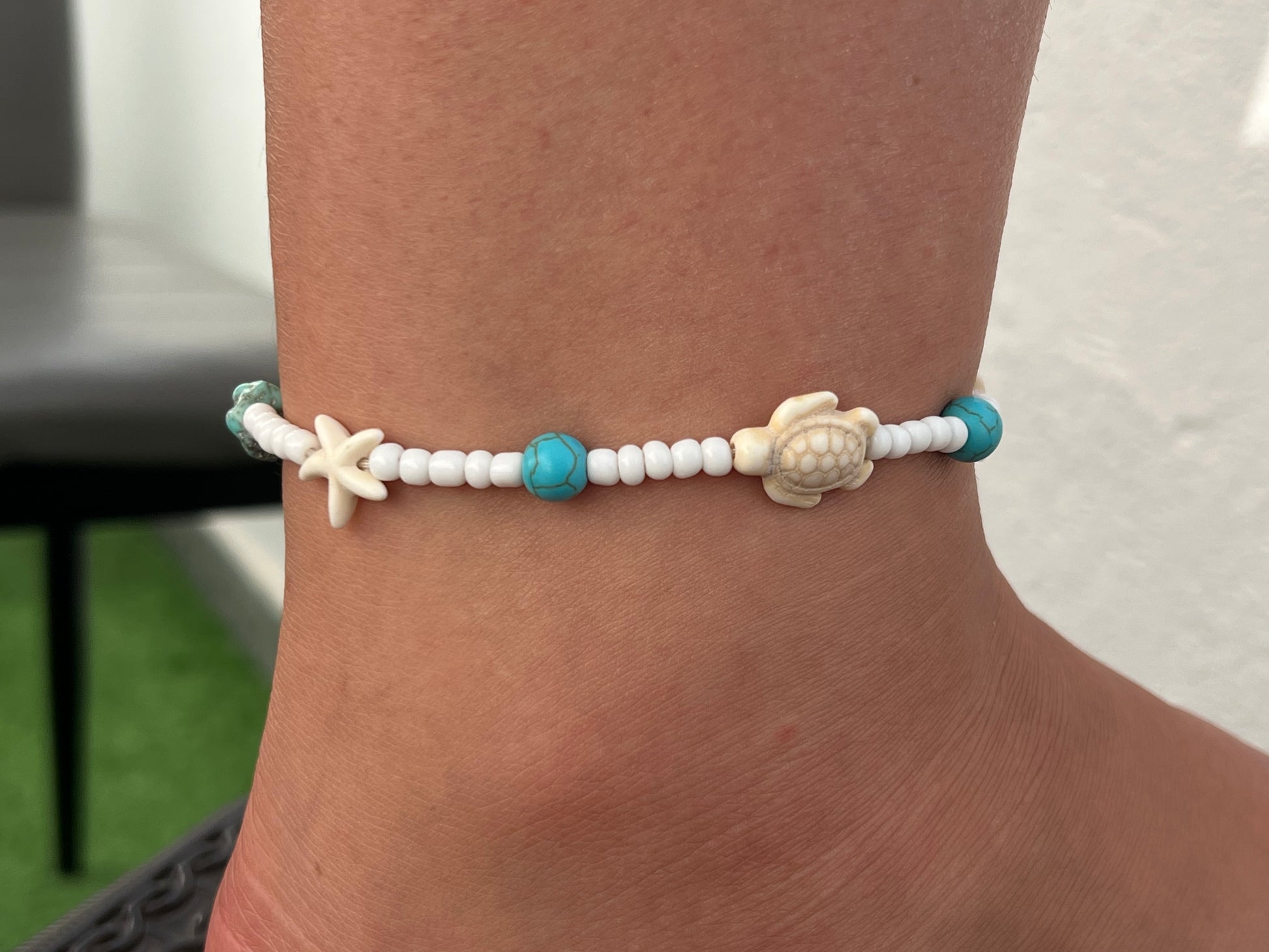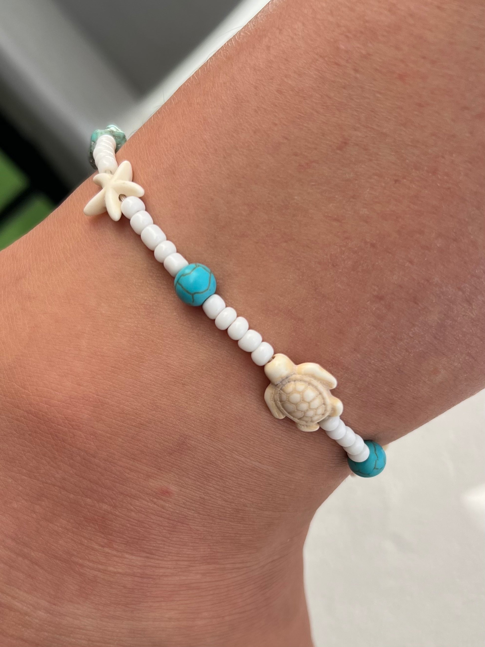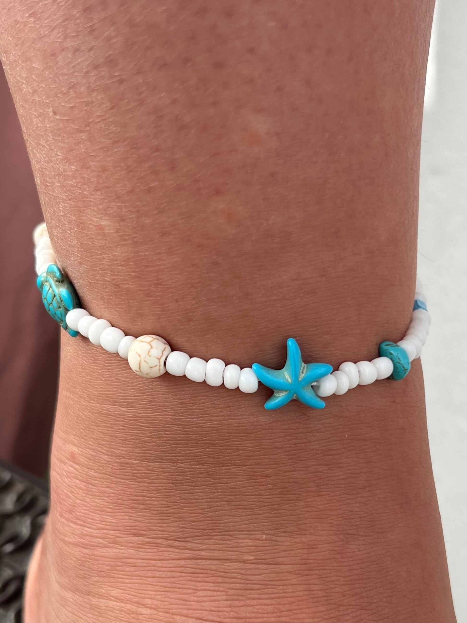 Inspirată de lumea marină, această brățară de picior cu detalii precum stele de mare, țestoase și scoici aduce vacanța mai aproape de tine. Perfectă pentru un look boho-chic sau pentru plimbările de seară pe plajă.