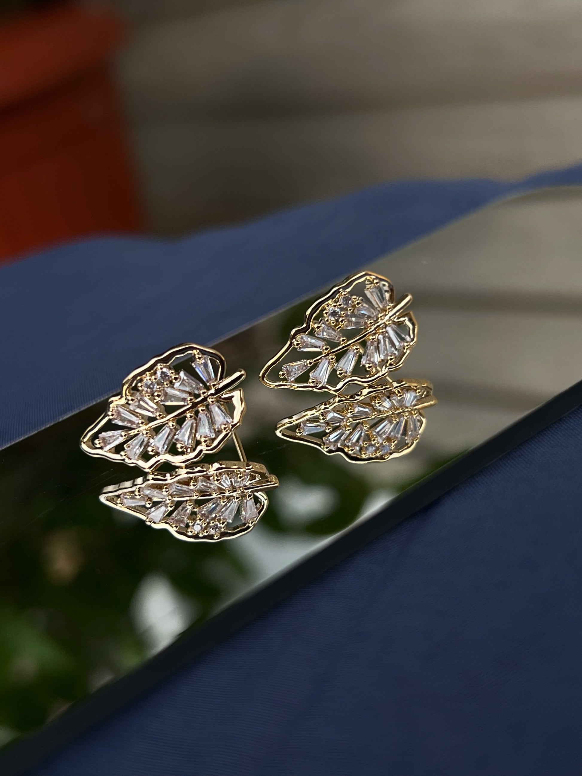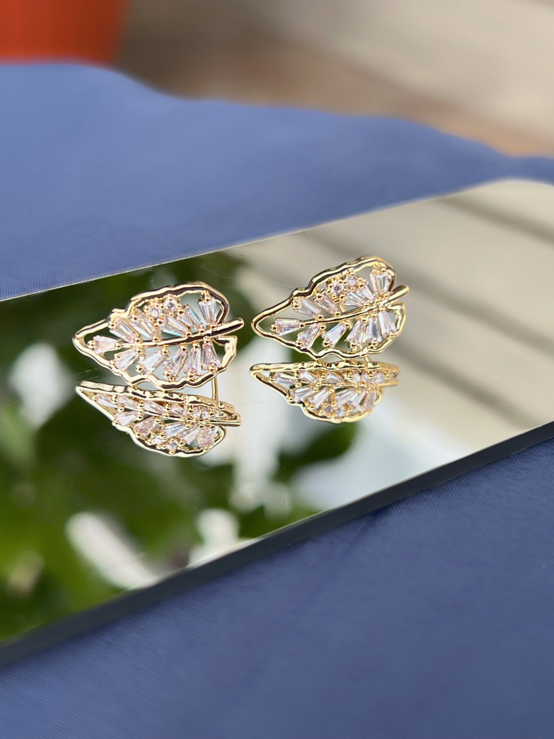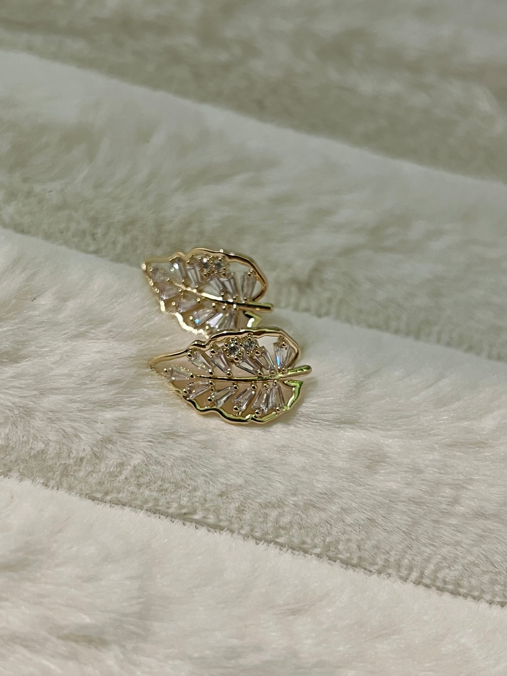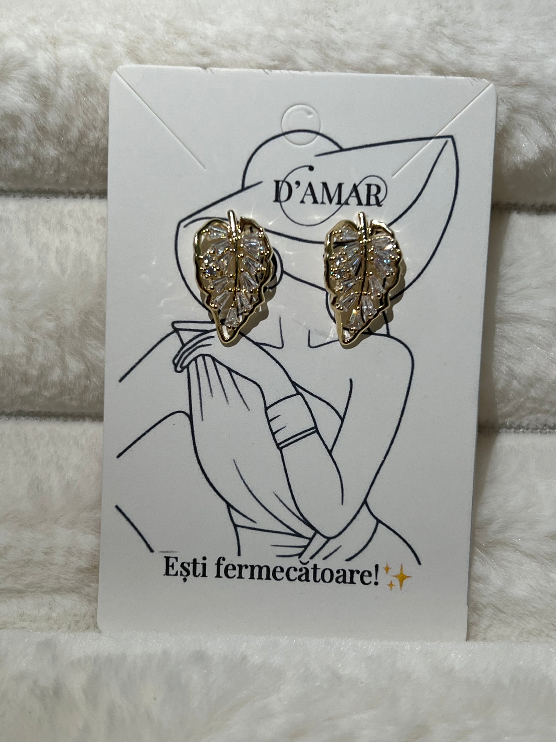 Inspirat din eleganța frunzelor delicate, modelul Sofia aduce un suflu natural și rafinat în colecția ta de accesorii. Realizați într-o montură aurie cu forme organice, cerceii sunt decorați cu pietre de zirconiu tăiate fin, care oferă o strălucire discretă și feminină. Designul ușor curbat urmează conturul urechii, pentru un efect vizual deosebit.