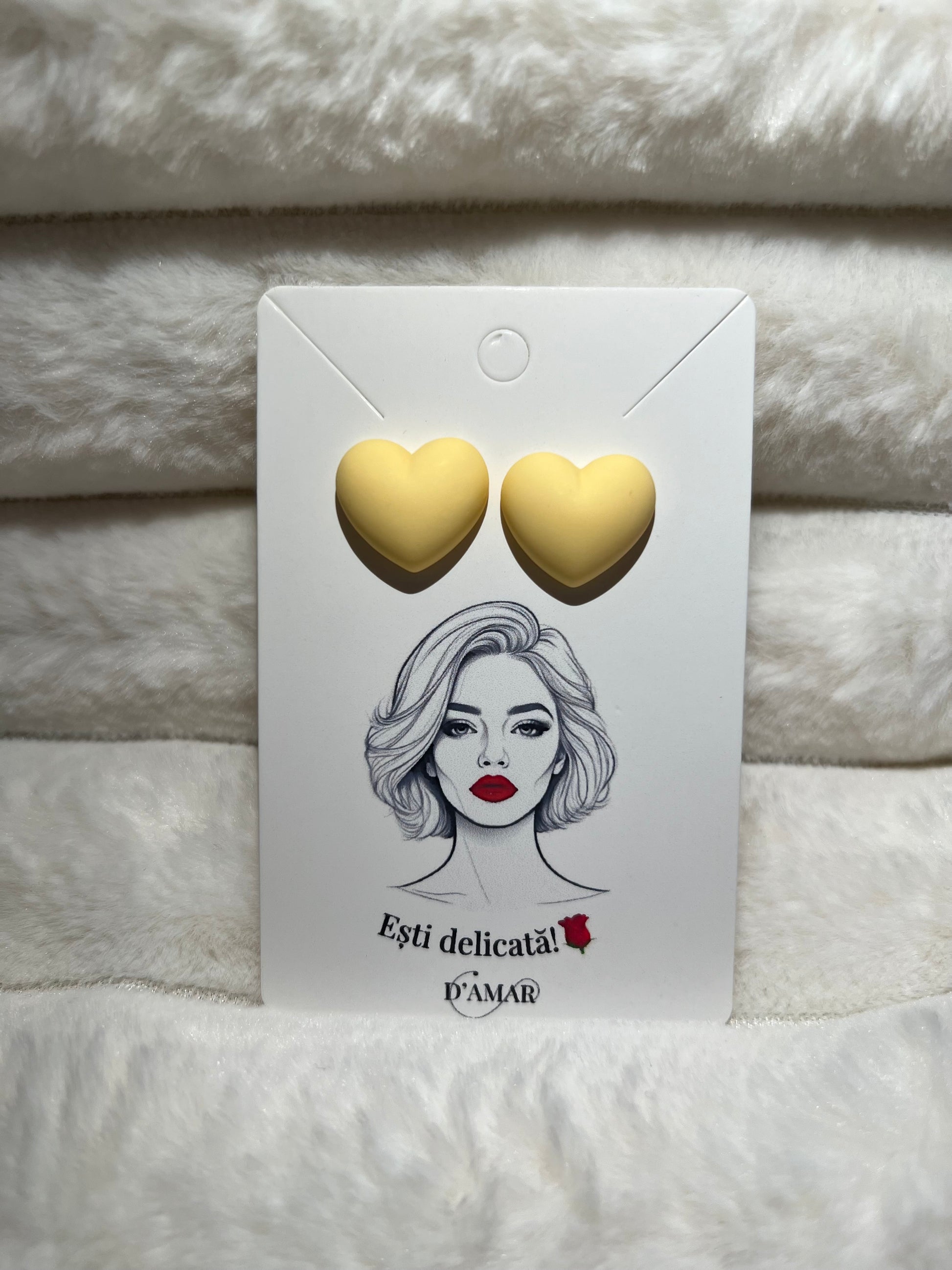 Simpli, veseli și feminini, acești cercei în formă de inimă sunt perfecți pentru a adăuga o pată de culoare subtilă oricărei ținute. Forma adorabilă și finisajul mat pastelat îi fac potriviți atât pentru look-uri casual, cât și pentru stiluri mai romantice sau jucăușe.