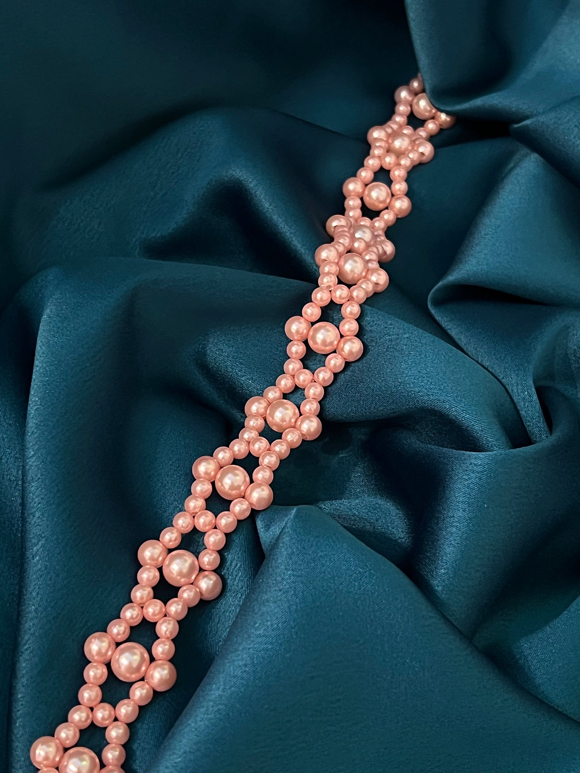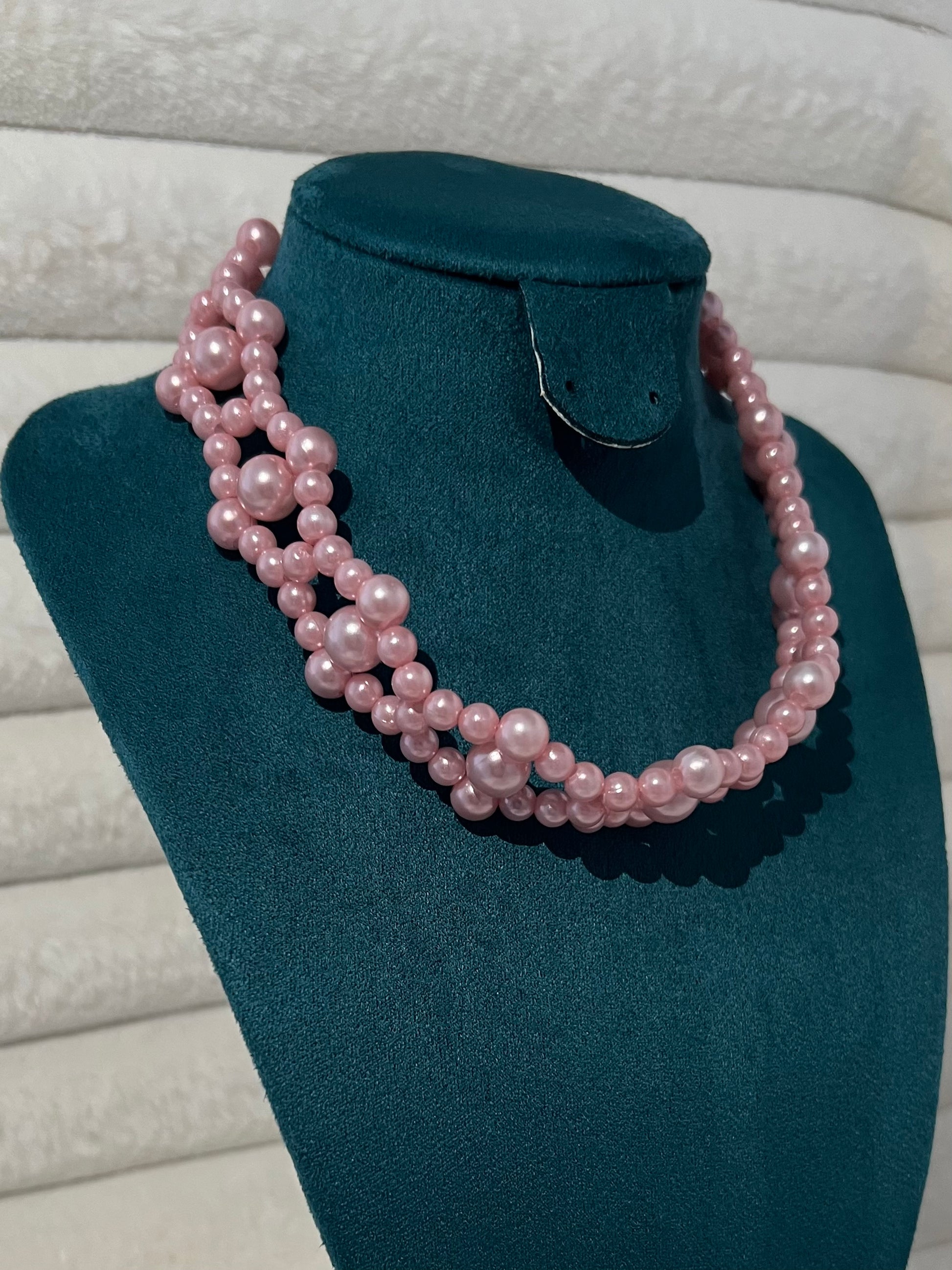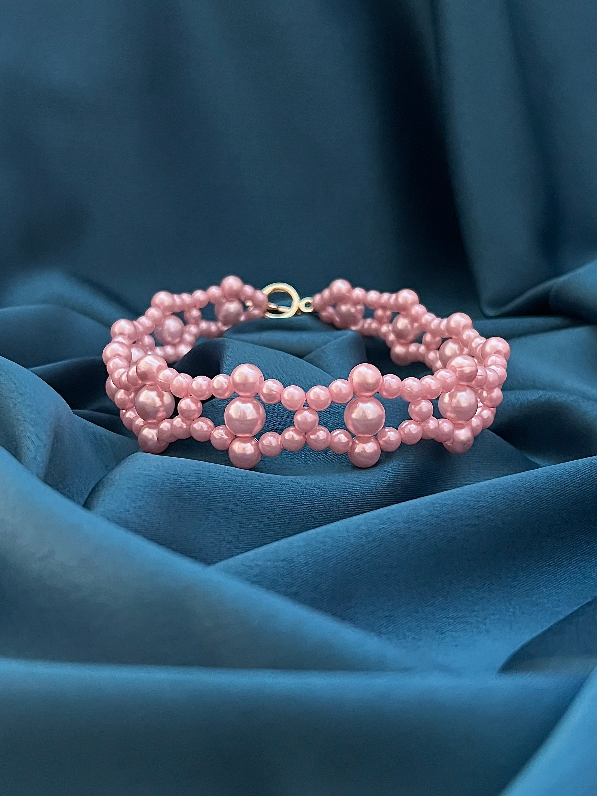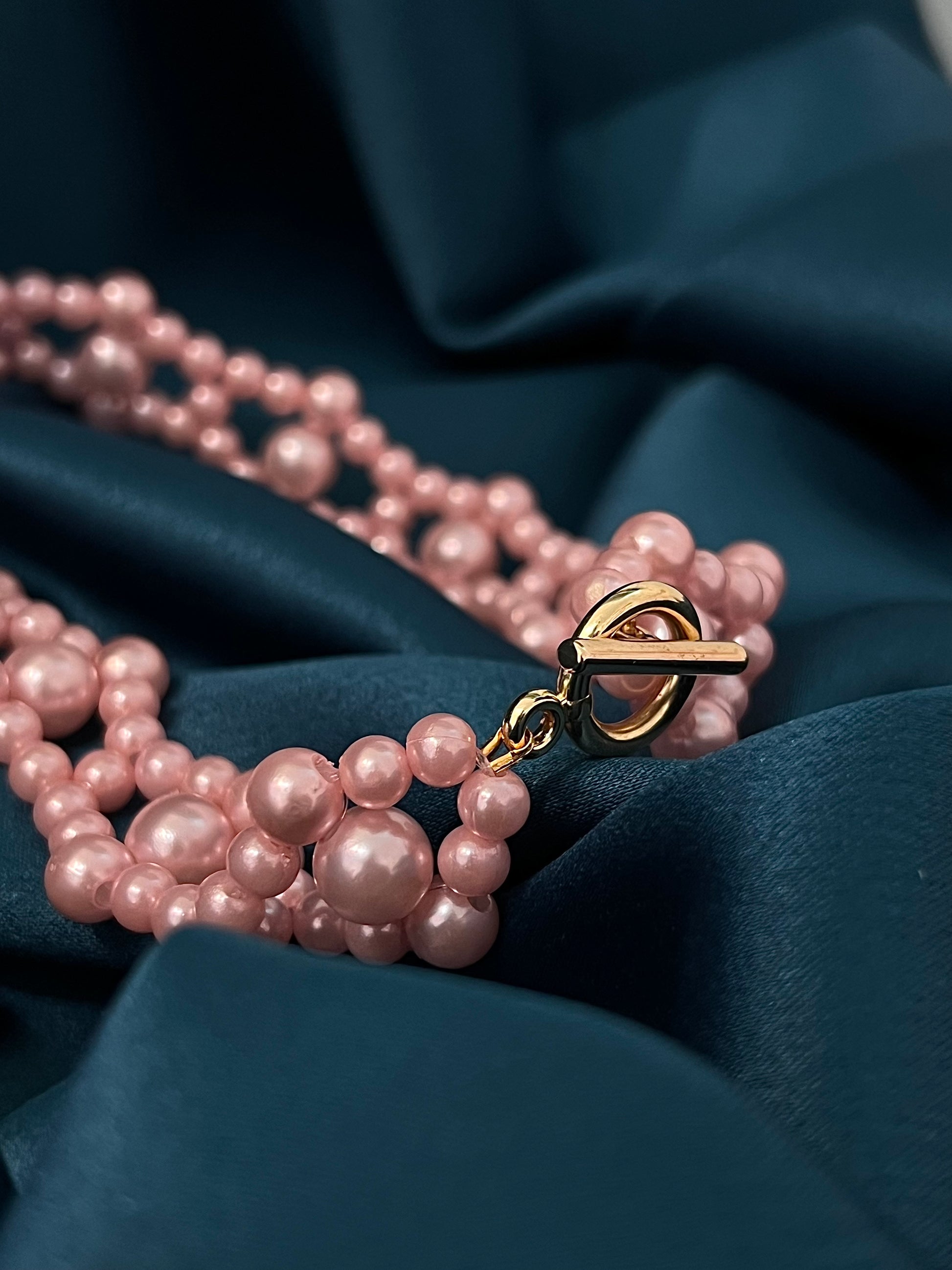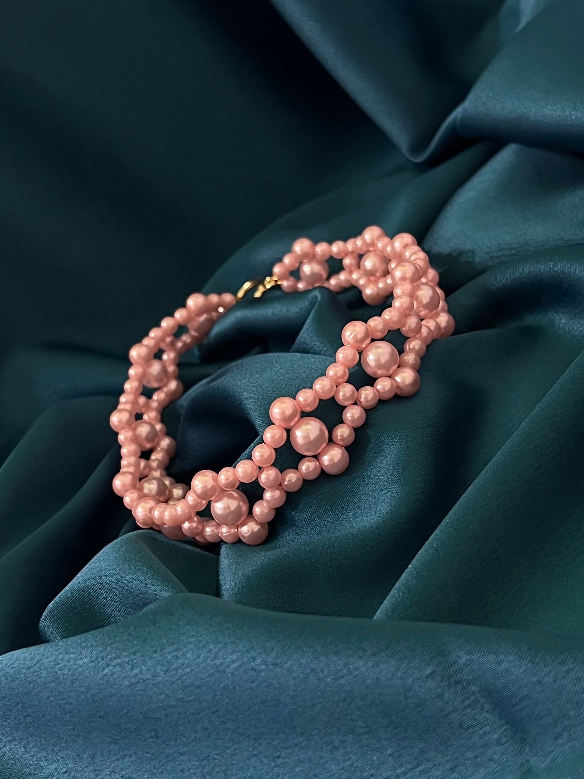 Chokerul Lena este o piesă de impact cu aer delicat, realizată din șiraguri împletite de perle din plastic cu finisaj perlat în nuanțe calde de roz prăfuit. Designul său texturat și armonios scoate în evidență linia gâtului și adaugă rafinament oricărei ținute – fie că îl porți la o rochie romantică sau ca accent contrastant la o cămașă minimalistă.