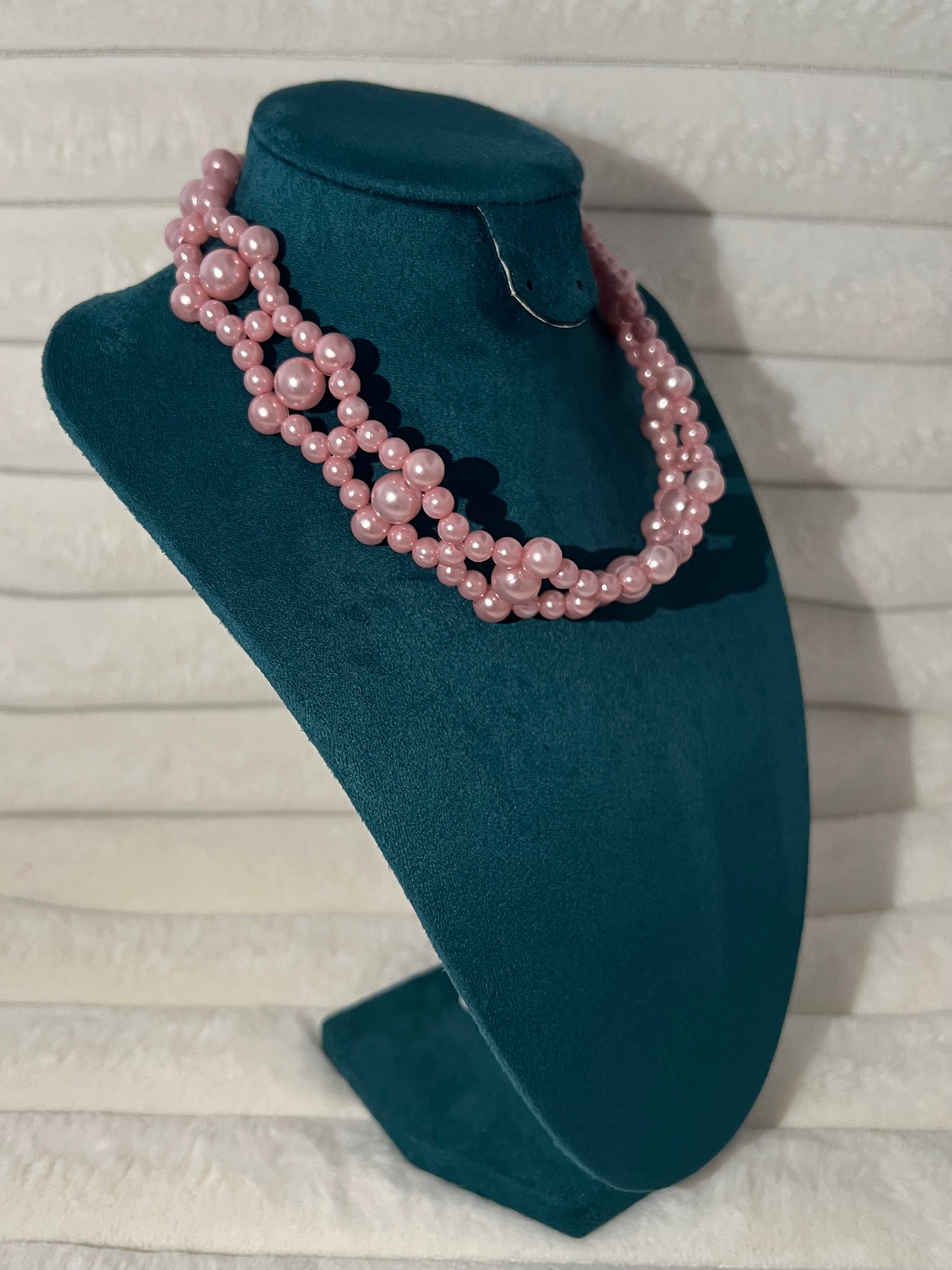 - Material: Perle din plastic cu aspect perlat (roz pastel)