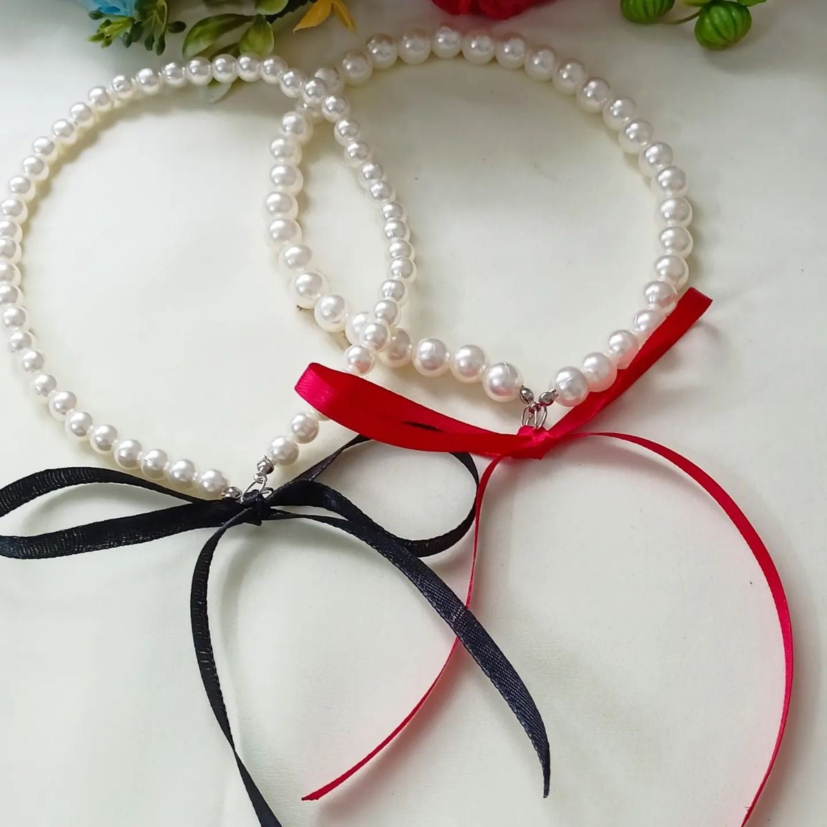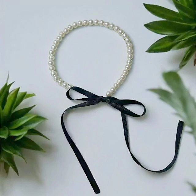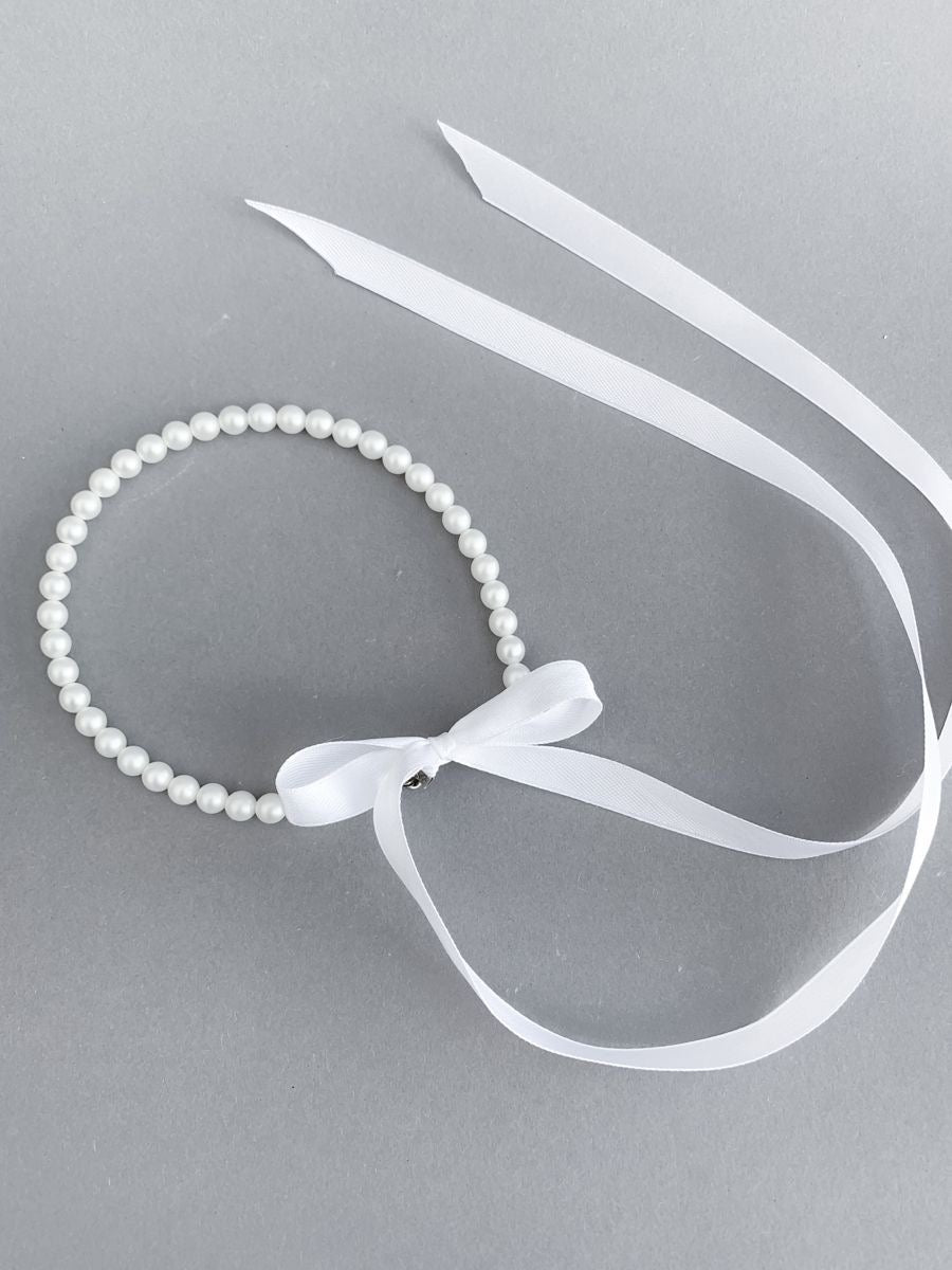 - Material: perle sintetice + panglică din satin
