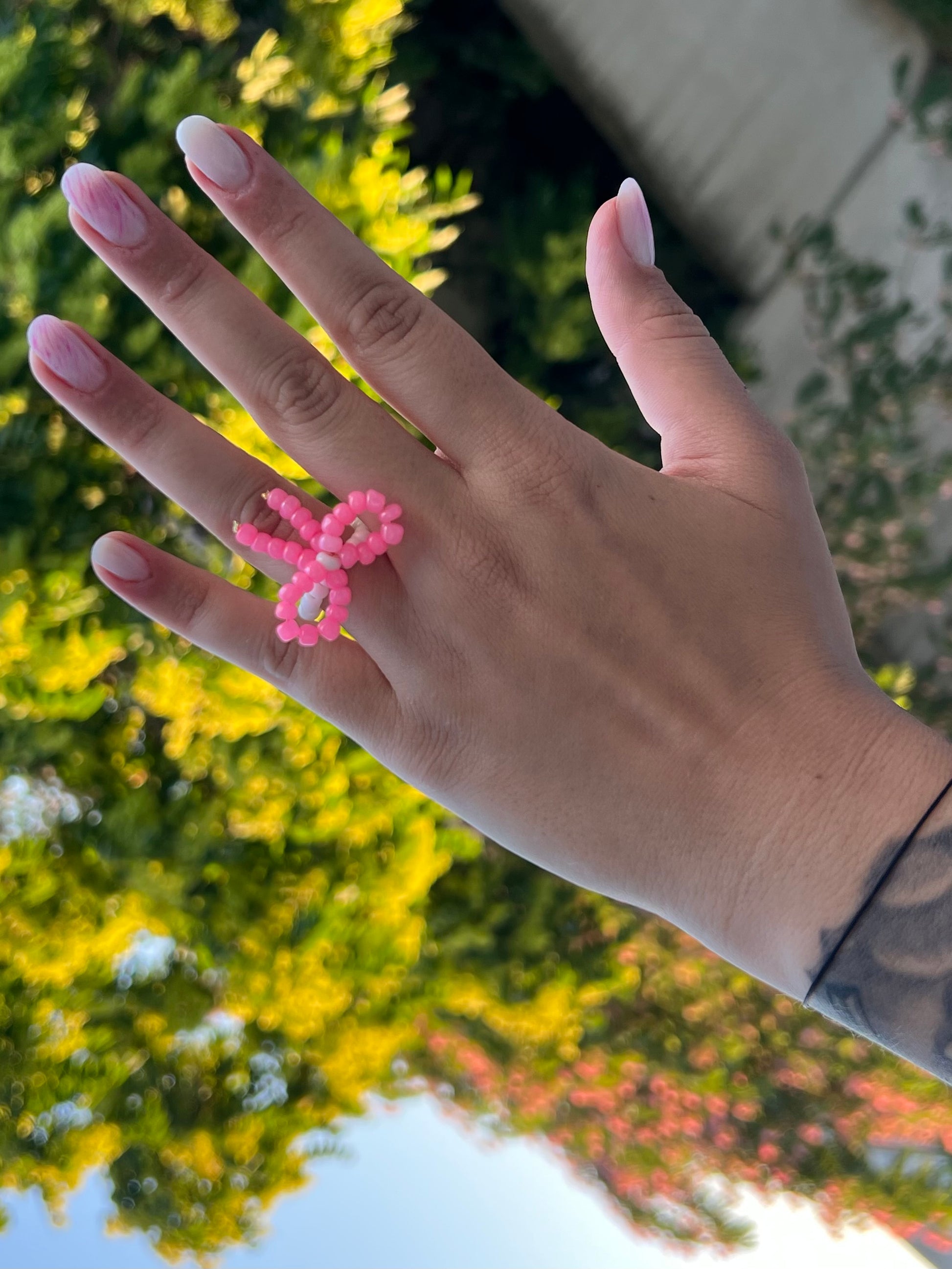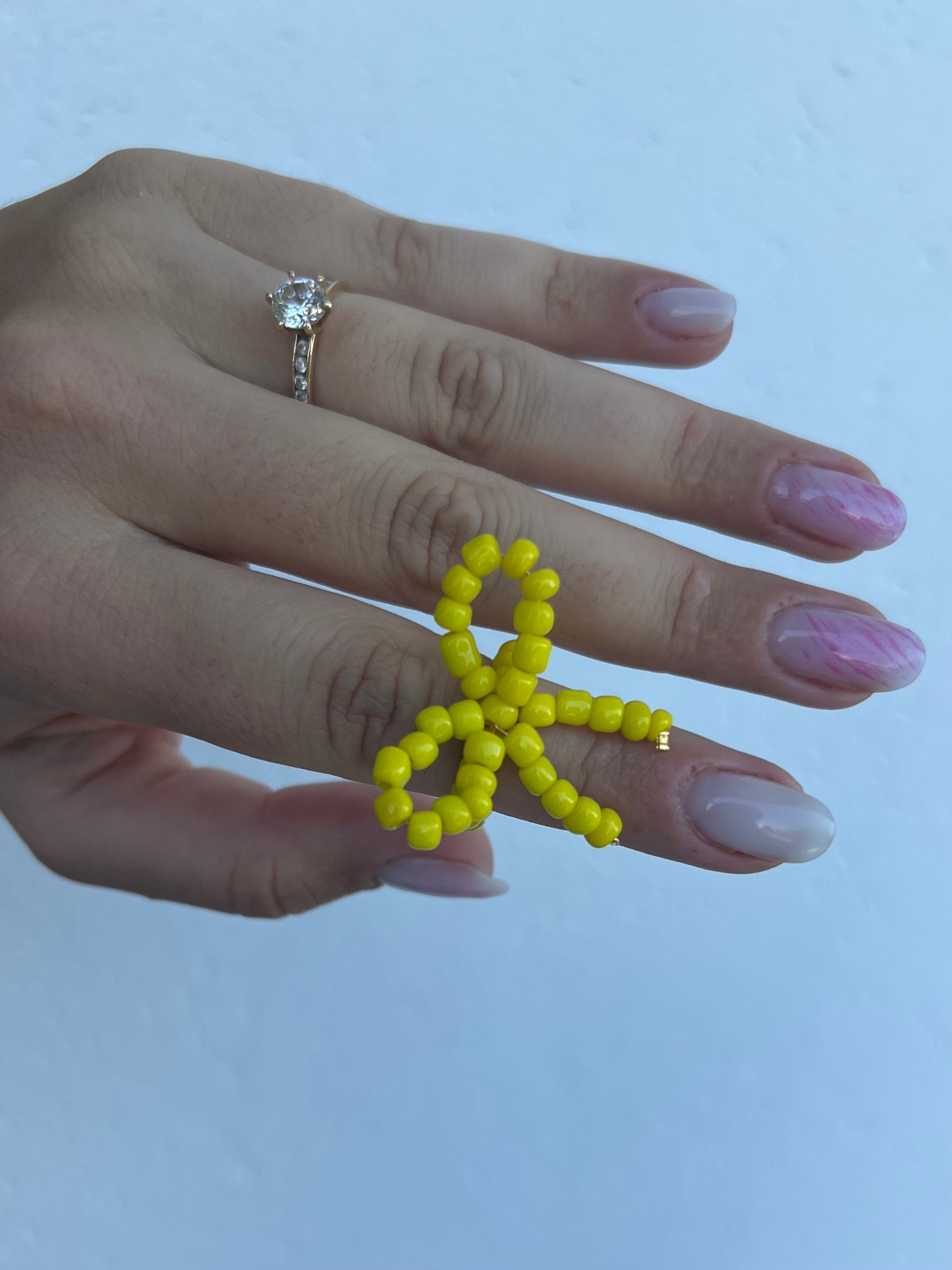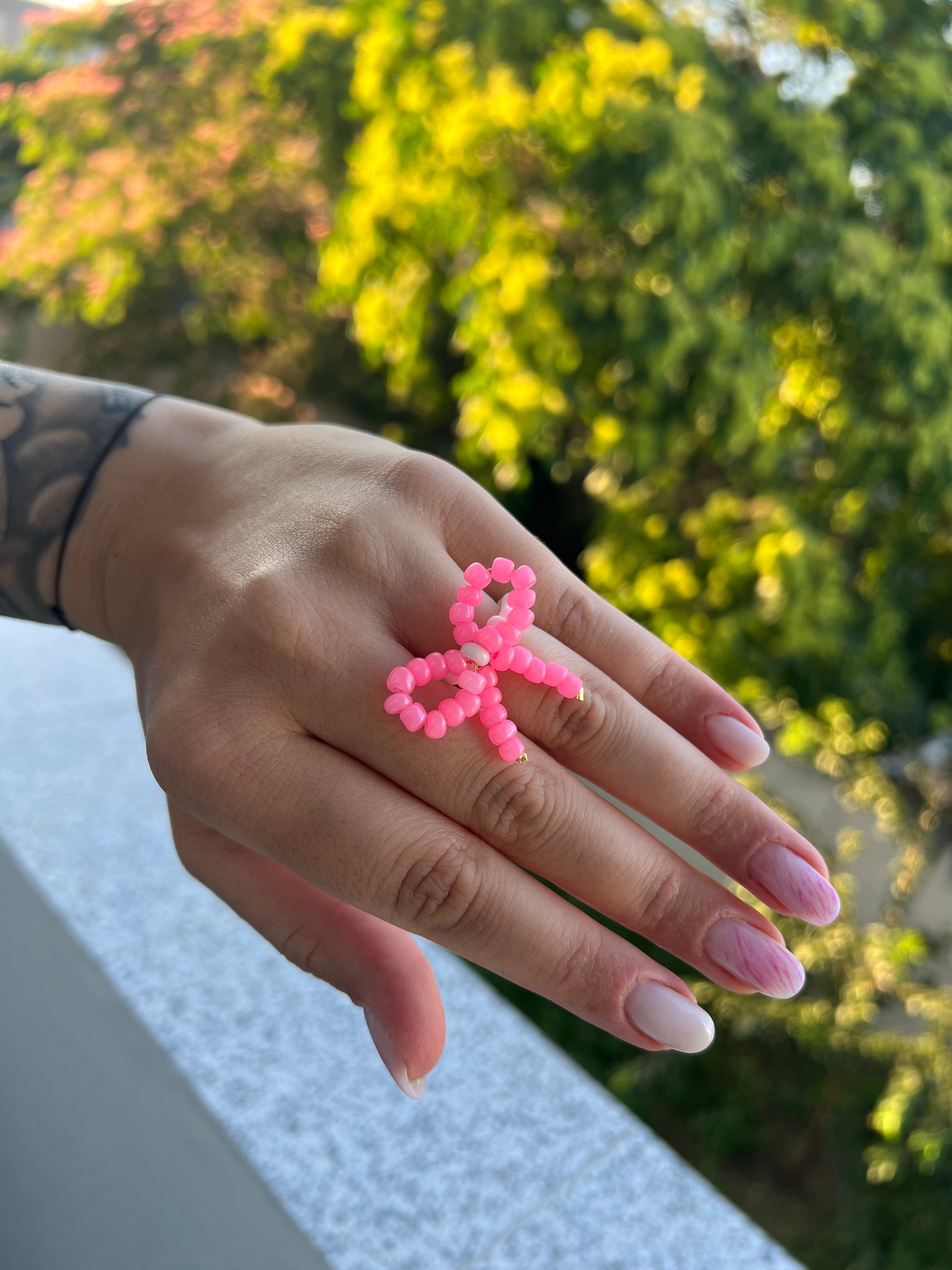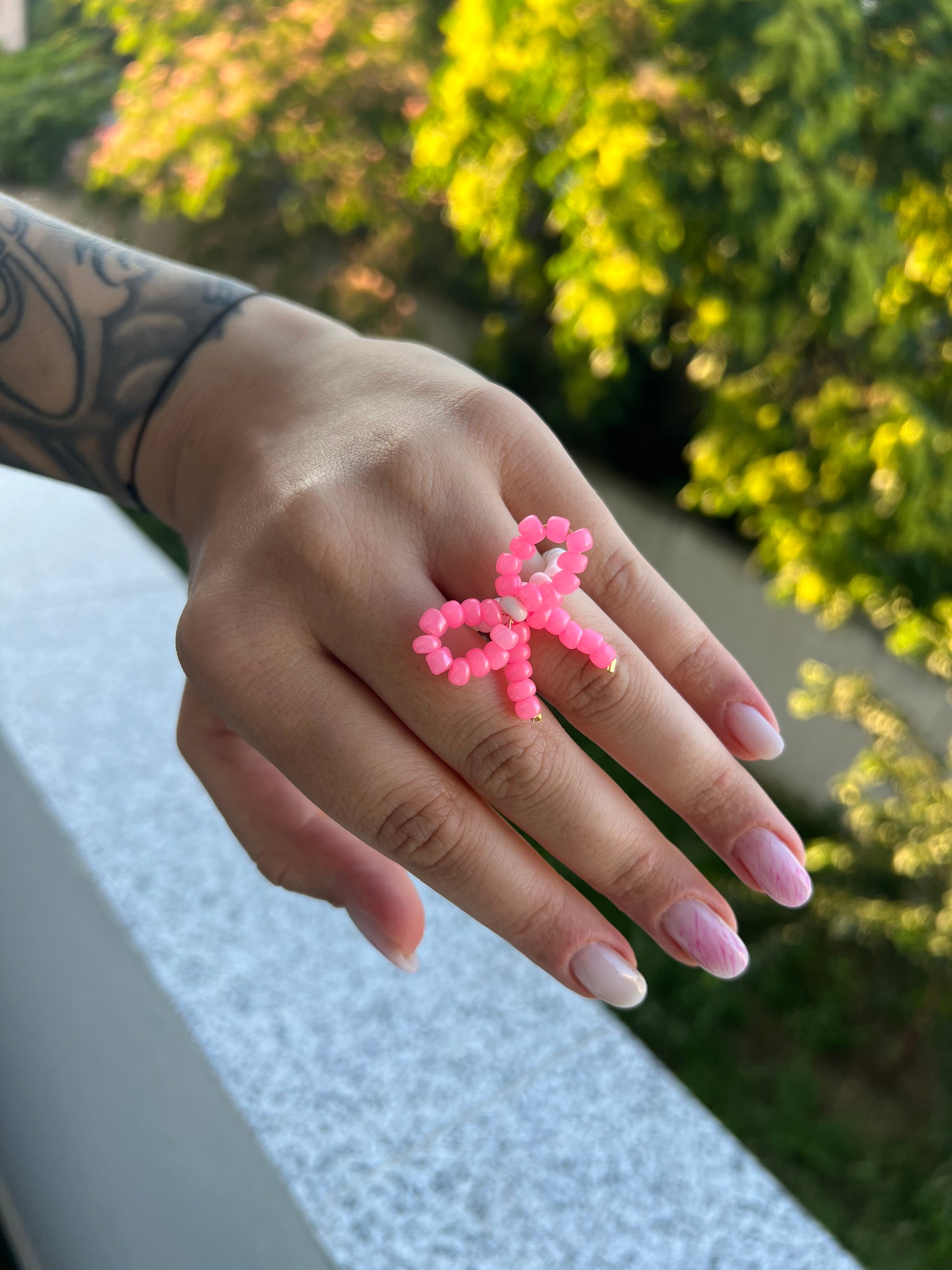 O piesă feminină, simplă dar cu efect! Inelul „Vivian” este realizat manual din mărgele de nisip și modelat pe bază de sârmă, cu un design în formă de fundiță care adaugă un aer playful oricărei ținute. Ideal pentru un look casual, de vară sau de festival.