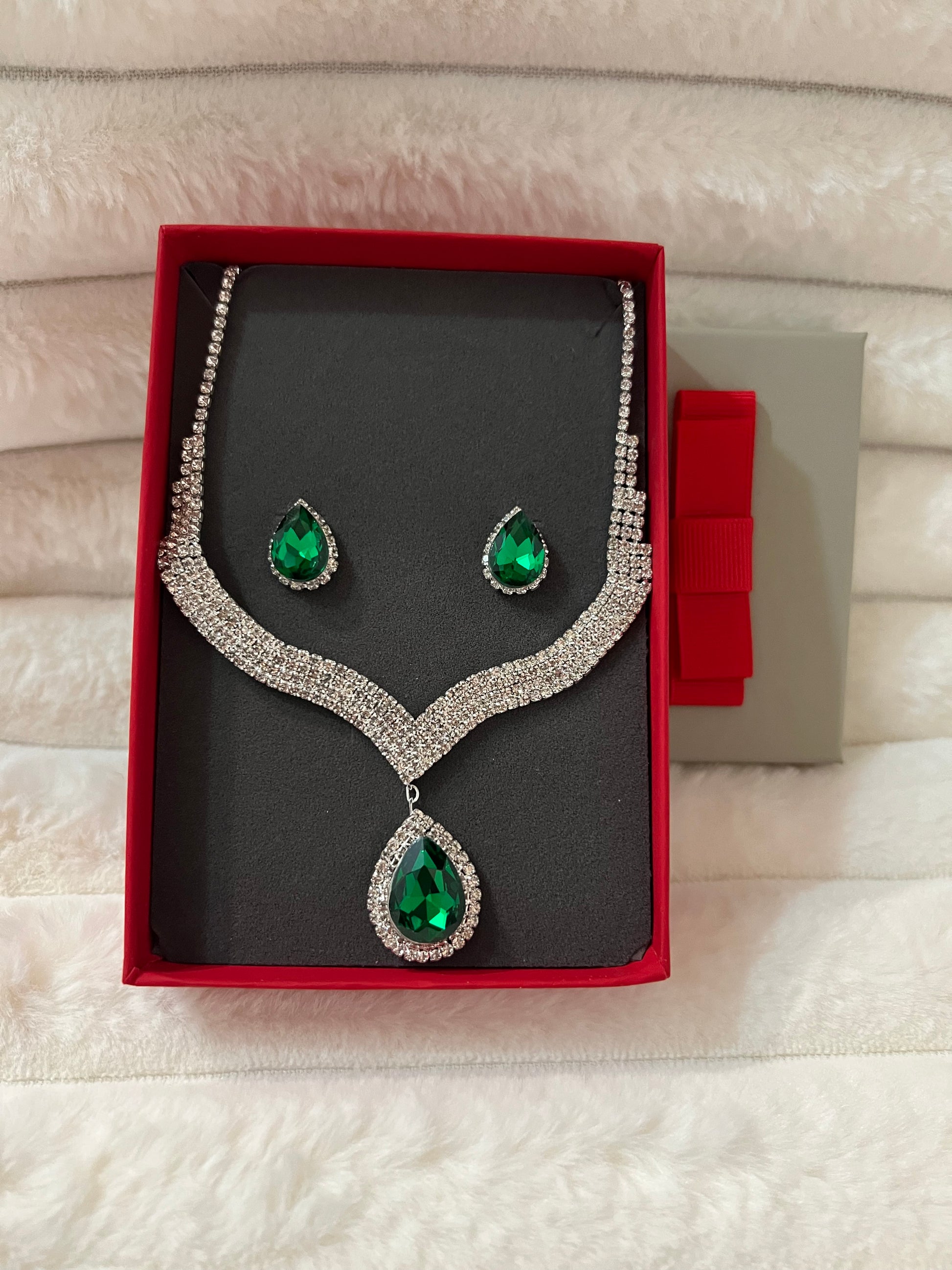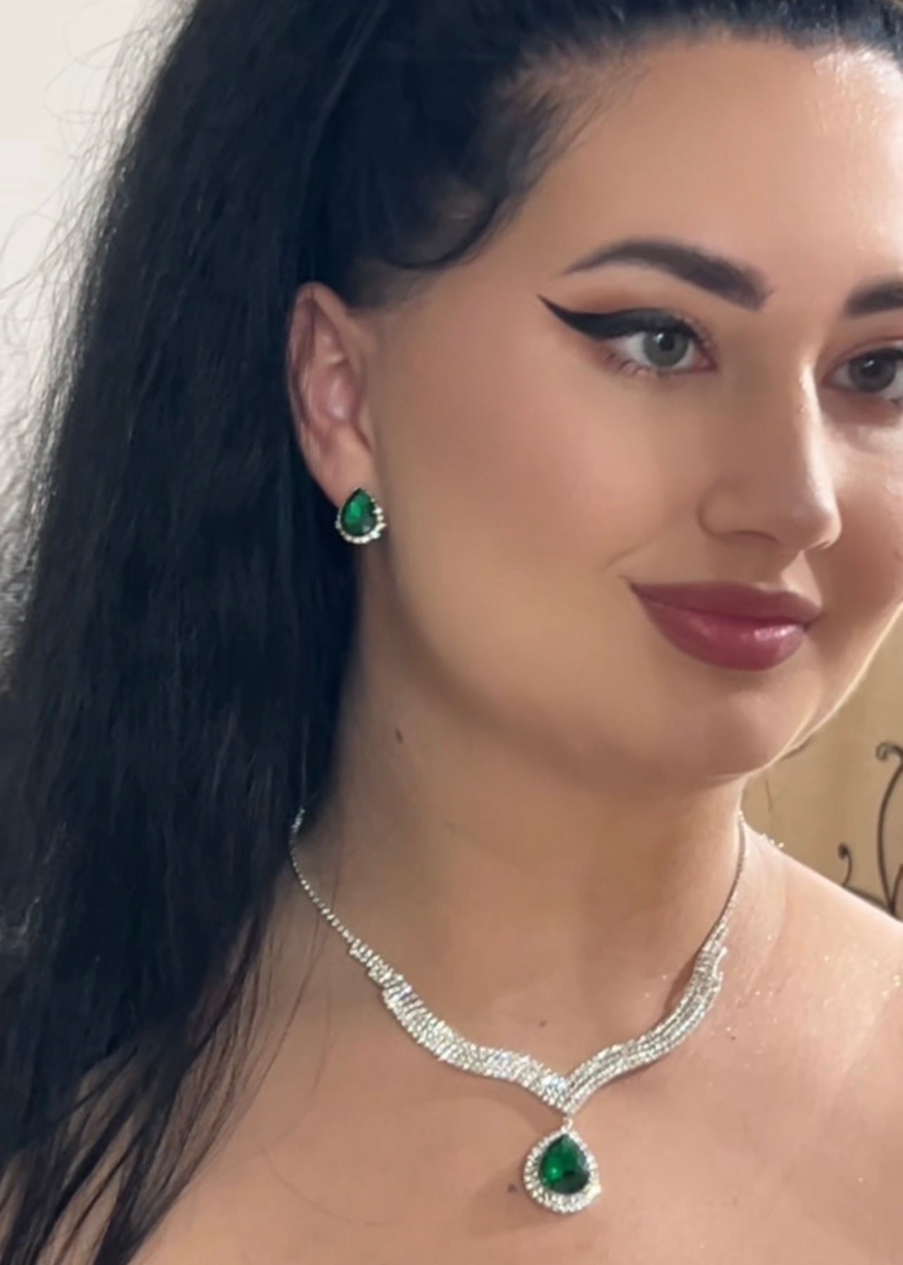 Fiecare apariție merită o bijuterie care să o înnobileze, iar Setul Esme face exact asta. Combinând strălucirea cristalelor clare cu rafinamentul pietrelor verzi în formă de lacrimă, acest set transformă orice ținută într-o declarație de eleganță. Ideal pentru evenimente speciale, dar și pentru momentele în care vrei pur și simplu să strălucești.